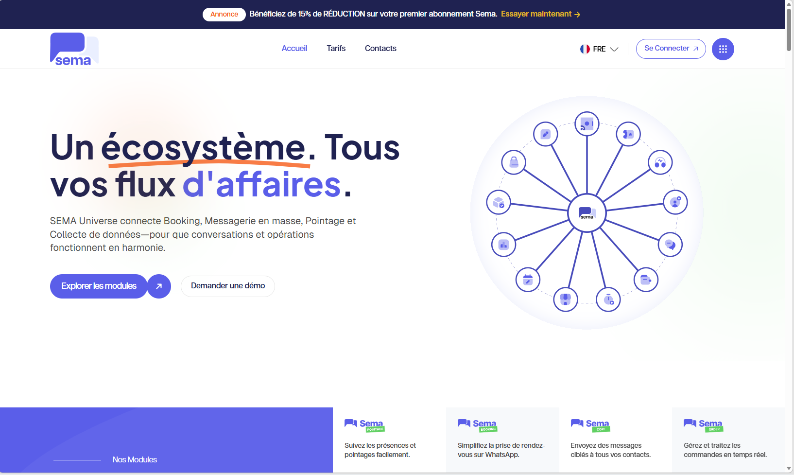 Cette section explique comment accéder à Sema Universe, se connecter à Sema Core et reconnaître les premiers éléments de l’interface.