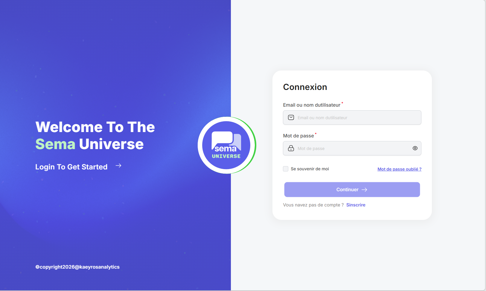 3. Vérifiez que la page de connexion ou la page d’accueil Sema Universe s’affiche.