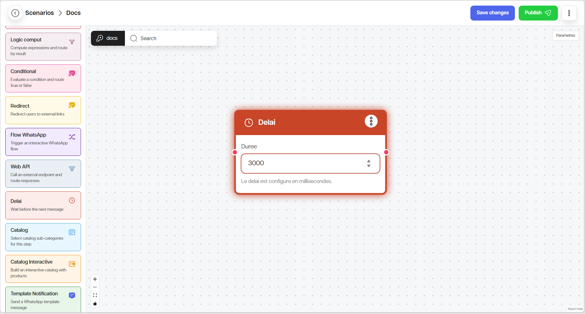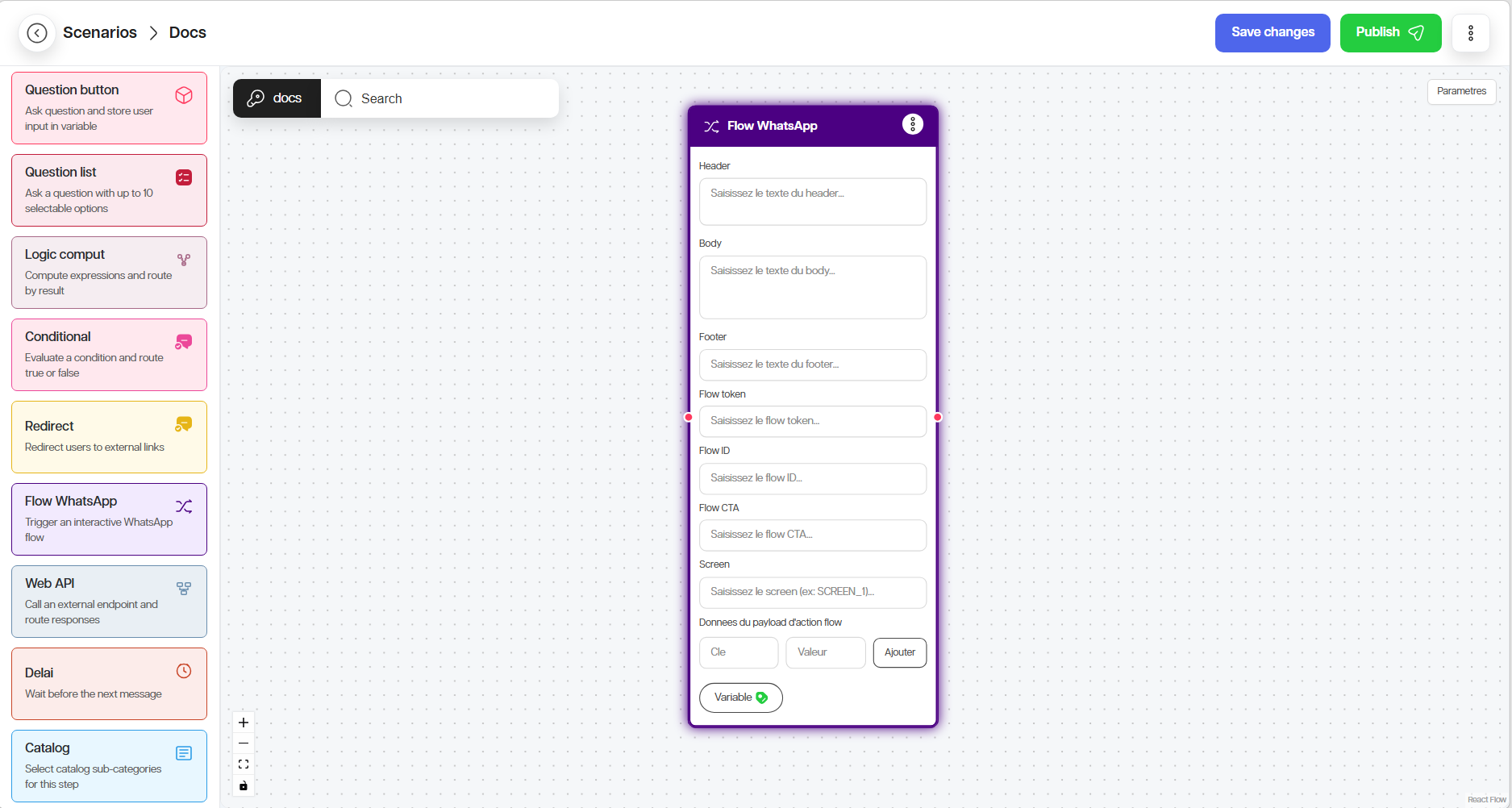 1. Ajoutez le nœud Flow WhatsApp.