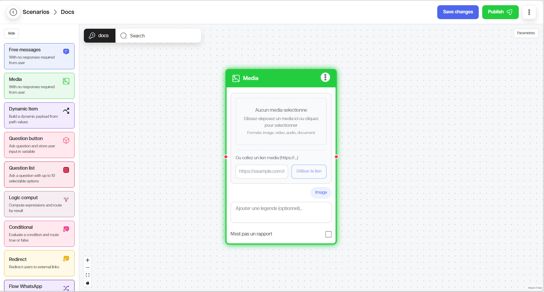 Ces nœuds permettent d’envoyer une image, une vidéo, un audio ou un document, avec ou sans légende.
