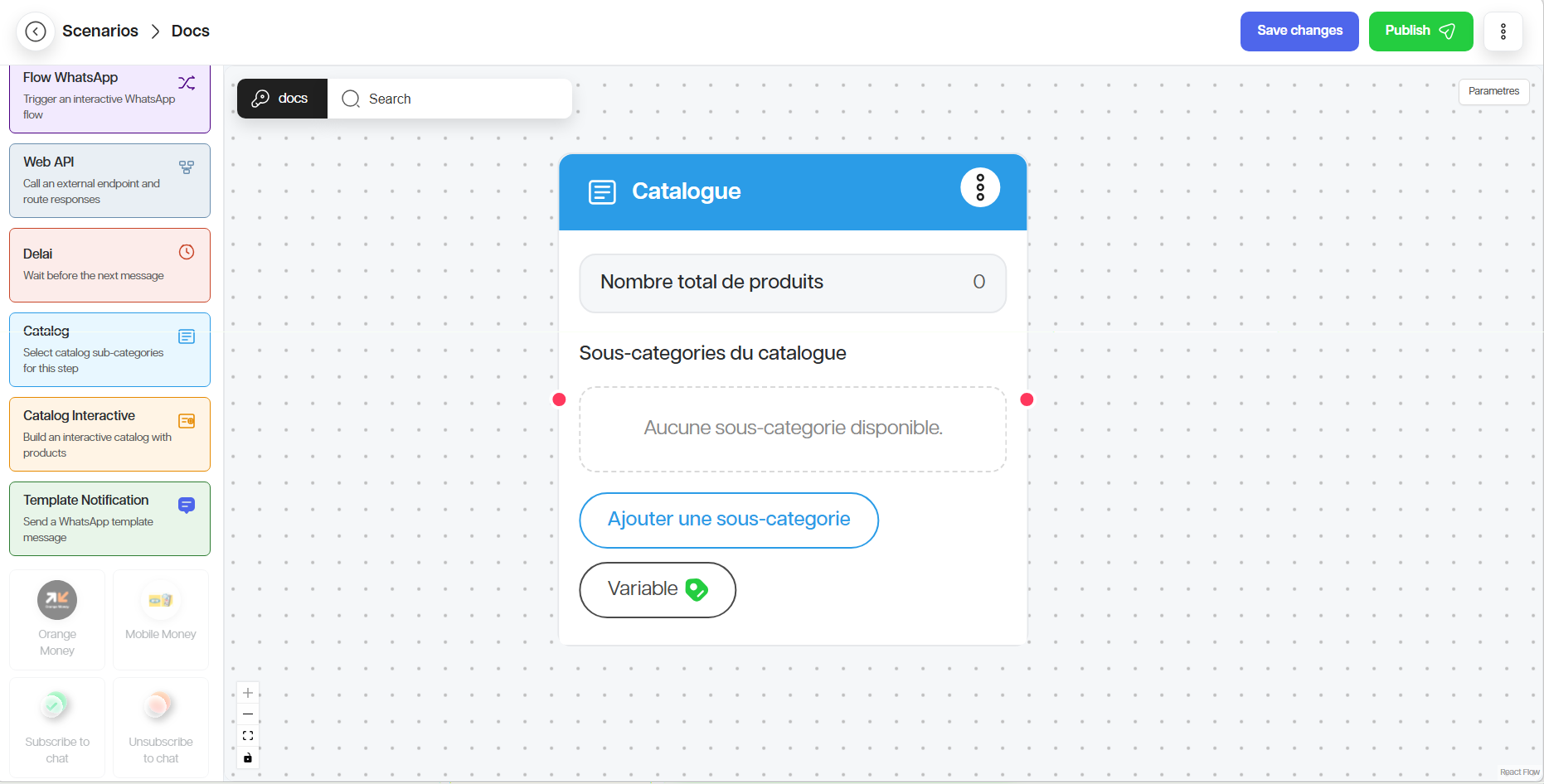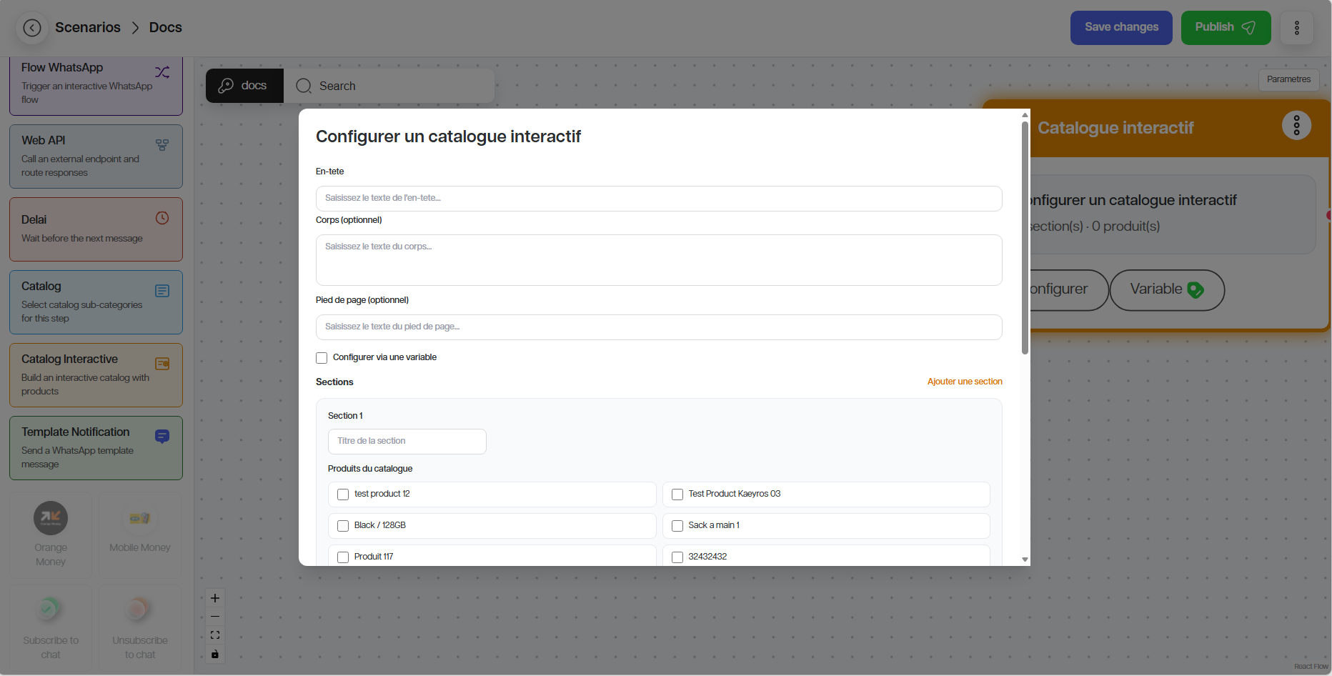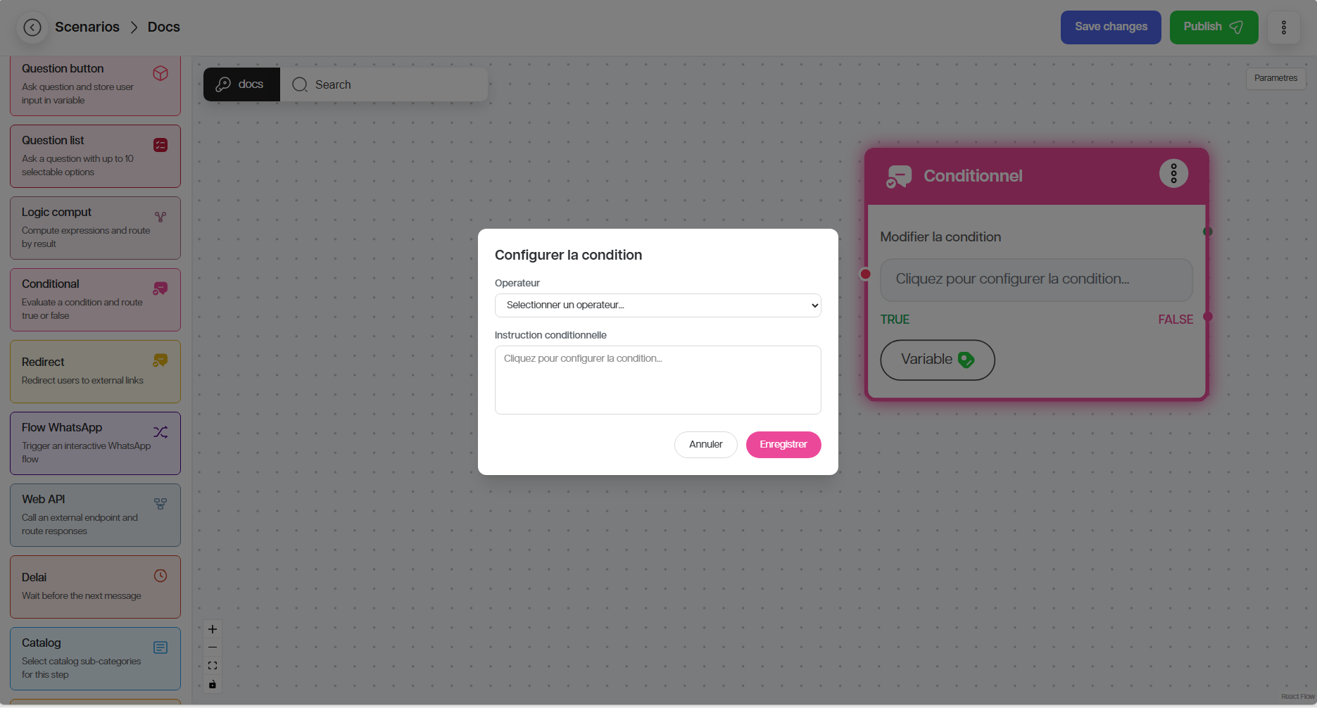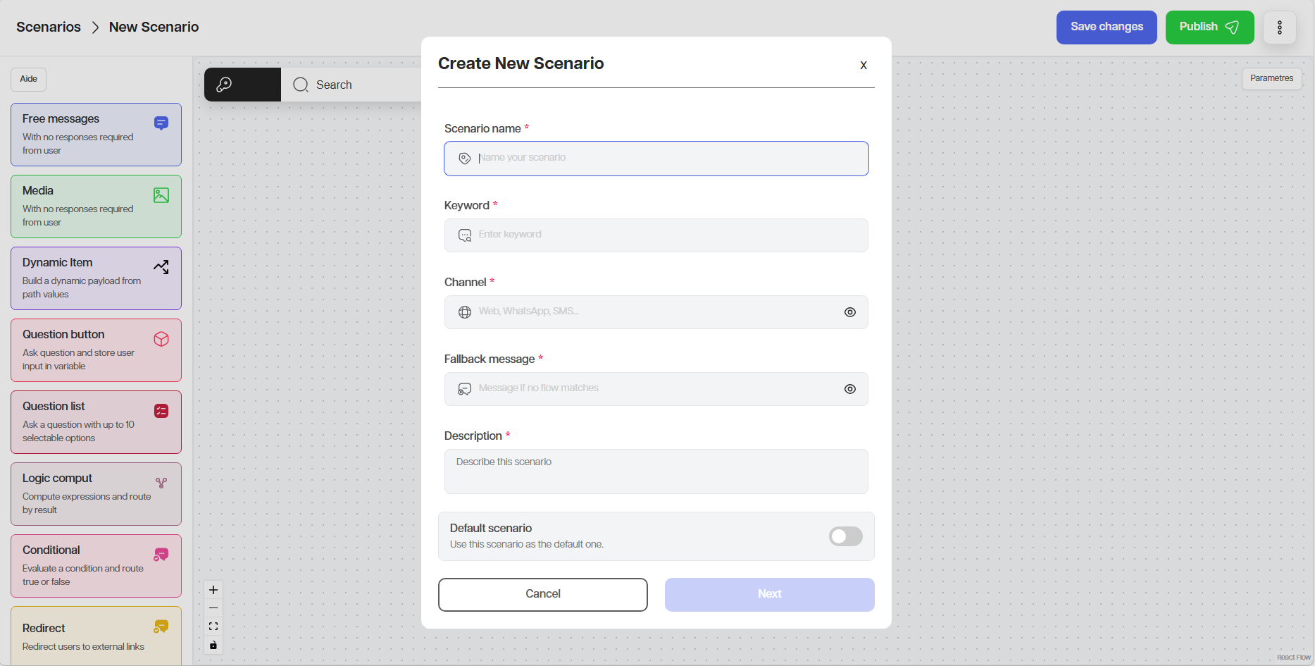 4. Definir le canal de déclenchement du scenario (WhatsApp, SMS, Web, etc.)