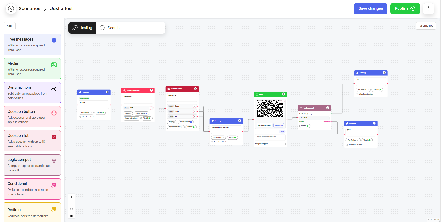 4. Testez le scénario avant publication.
