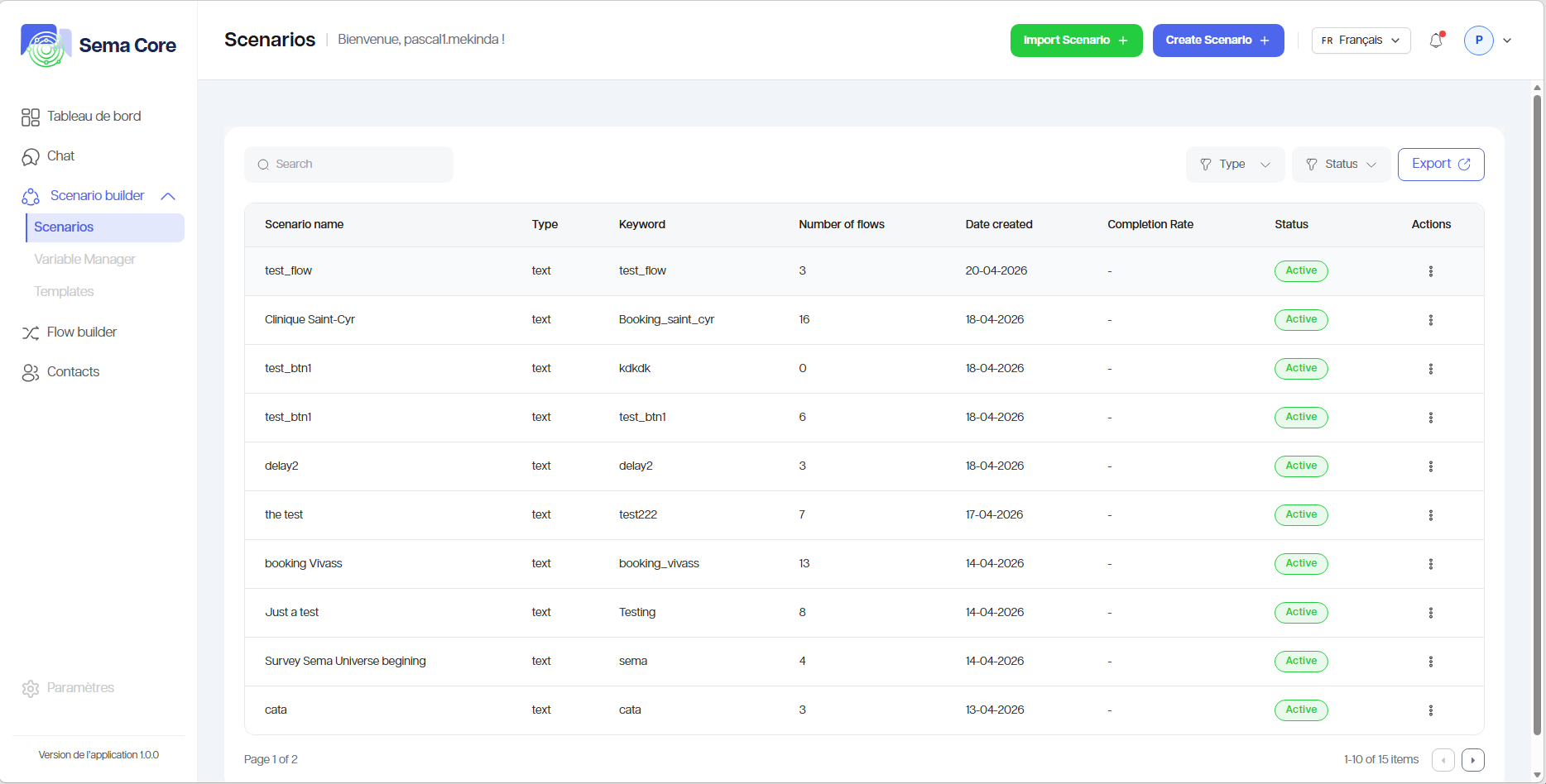 3. Ouvrez un scénario existant, Importer un scénario au format JSON ou cliquez sur Créer.